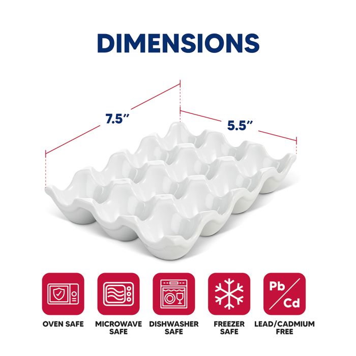 Holds 1 dozen eggs securely; boasts a more square footprint to easily fit on narrower and crowded fridge shelves